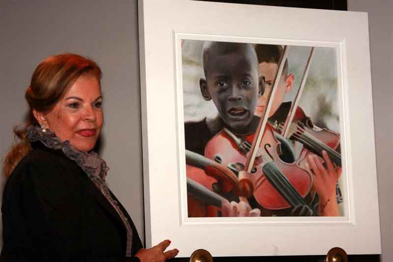 ![]() Heidir Viana Exibindo a Tela Doada aos Pais do Menino Violinista, falecido, Diego |