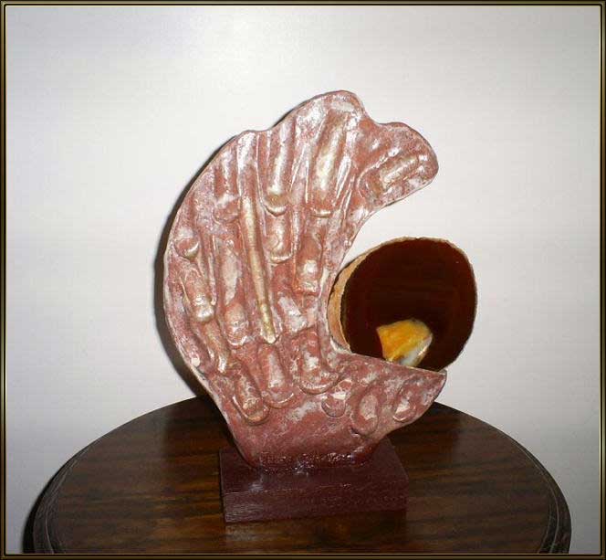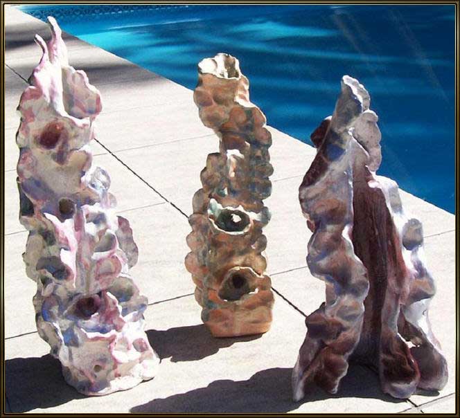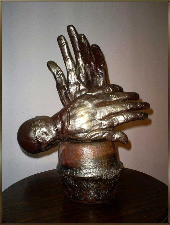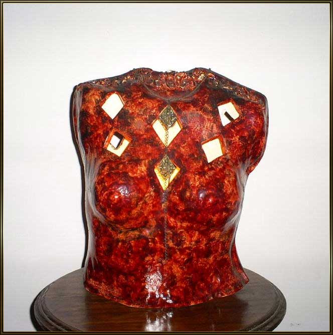 Produzo minha matéria prima de acordo com cada objeto, através das máquinas que possuo em meu Ateliê. Torno e maromba para misturar argilas em pó com outros elementos, tais como: vermiculita; feldspatos; caulim; pó de mármore; etc... Estufa elétrica - acelerar o processo de desitratação da água da argila -180° . Forno rústico - baixa temperatura - até 900° , forno para raku - 800° e forno elétrico - alta temperatura - 1300° . Terracota para virar louça com mais resistência - 1050° - 1100° ; porcelanas, gres e faiança - 1300º - 1400° . Costumo inserir na decoração das obras, engobes; esmaltes cerâmicos; óxidos metálicos e cristais - 1100° - 1200° .