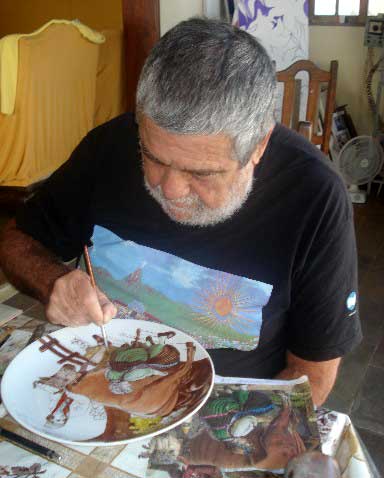J. Araujo J. Araujo é o nome artístico adotado por Jonathas Araujo, natural de Salvador, Bahia, em 1940. Veio para o Rio de Janeiro ainda criança, onde reside até hoje. Pintor agraciado com vários prêmios, participante de inúmeros eventos no Brasil e no exterior, requisitado por firmas de renome internacional, J. Araujo apresenta aqui pequena mostra do que há de ser a sua Exposição temática - Suiss Costumes, com o tema "Cantões e seus campônios com trajes típicos do século XVIII, a ser realizada na Andy Jullian Gallery, Ramstrasse, 18, Zürich, em dezembro de 2009, patrocinada pelo Consulado Suiço e pela Câmara de Comércio suiço-brasileira SUISSCAM e apoio do Hotel Le Canton, Produtos Roche e Swiss Air. São pratos de 31 cm de diâmetro, com imagens inspiradas na tradição e costumes de vários cantões suiços, constantes em publicações sobre essa herança artística ainda hoje cultivada.