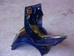 além de soprar, começa a curvar e pintar vidro , em uma única peça, trabalho
