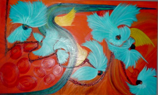 começa a pintar em tela, com o tema “A Arca da Memória”, um tema de fundo