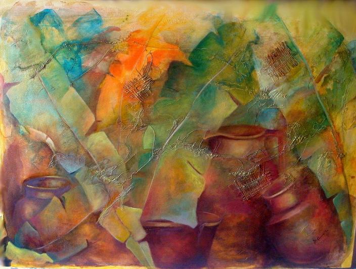 Olho as formas Percebo a suavidade dos elementos Os claros, os escuros, o colorido Na conformação interior descubro O ajuste perfeito, a multiplicidade A diversidade das coisas Seleciono, arranjo os pincéis, as tintas e tela Todo material necessário está no local de trabalho Começo e... Da liberdade dos pincéis em movimento ( Doce loucura) Cria-se a grande dança das cores sobre o espaço vazio e branco da tela Deste jogo, brotam espontaneamente, sonhos, impressões interiores, emoções O " E u " profundo gravado em indeléveis registros coloridos.