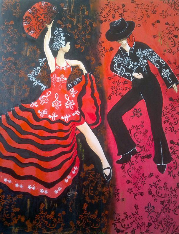 Flamenco em vermelho e preto