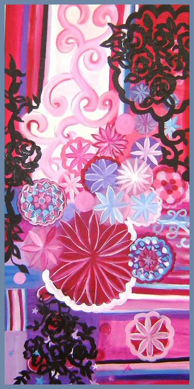 exposição, as obras consistem na pintura de motivos florais e arabescos,