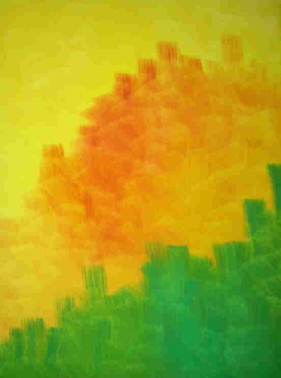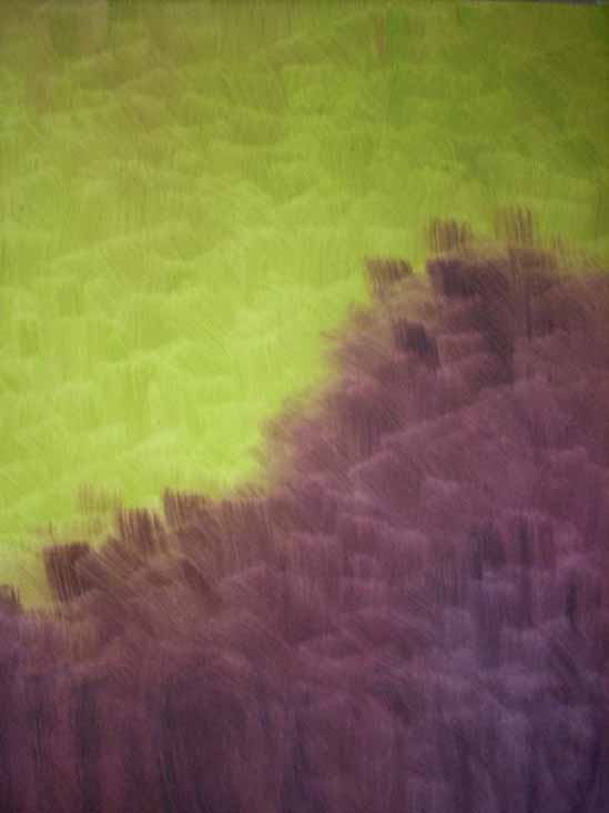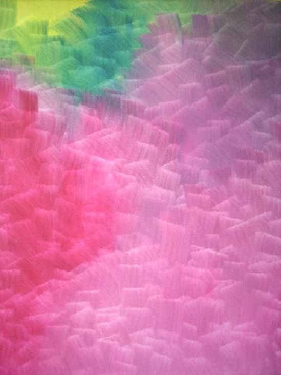 alcançável”. As pinceladas da Artista sugerem o infinito, não há começo e fim delimitados, assim como não há limites para suas explorações cromáticas, que podem ser traduzidas como formas de vibração. Sim, há também um pouco de Op Art na obra