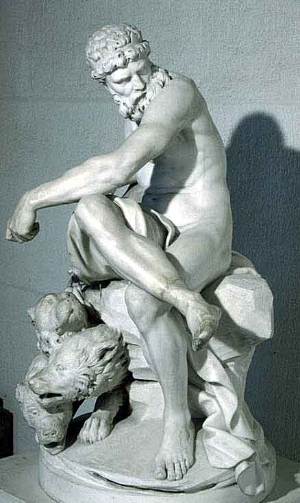 1760 com a apresentação do grupo de mármore "Pluto Holding Cerberus