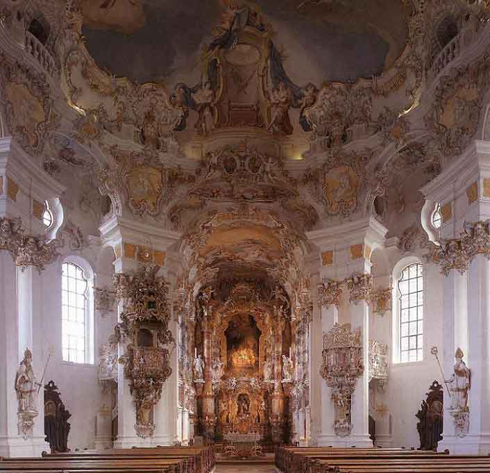 interior rococó da Igreja dos Peregrinos de Wies, perto de