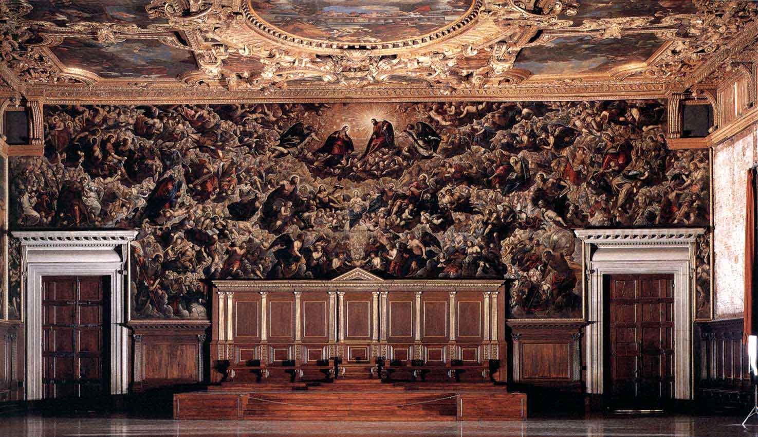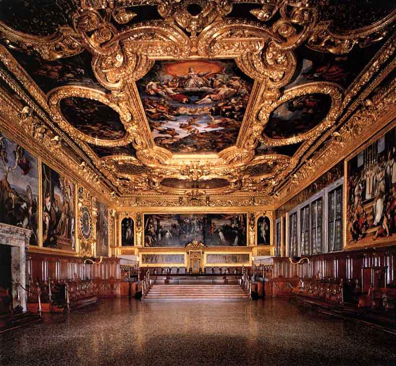 Tintoretto , Veronese e seus discípulos. Salientam-se o teto da Sala do
