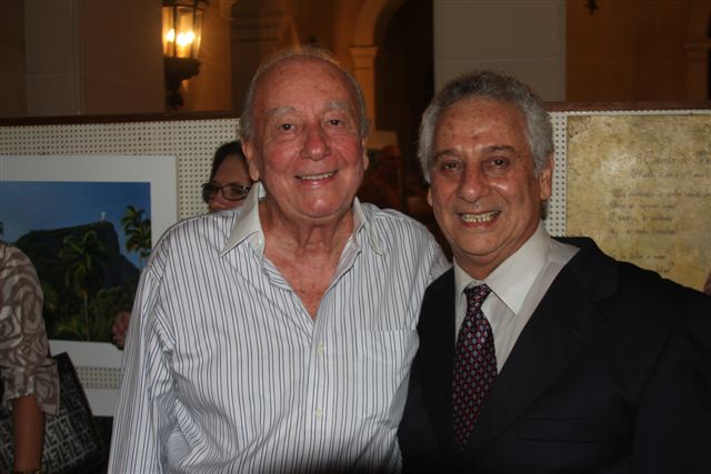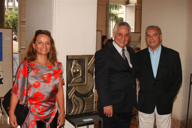 Maria Araujo e sua obra em bronze Concepção - Capelluto e o amigo e parceiro Raul Mendes Silva