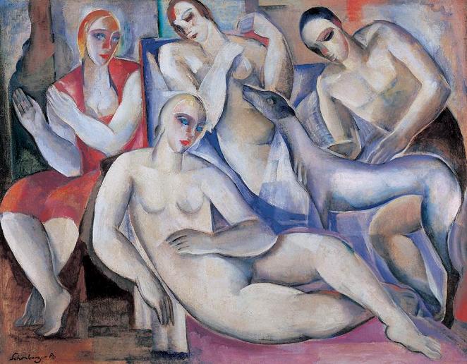 Armand Schonberger, 1929 - Nude Composition with Dog -