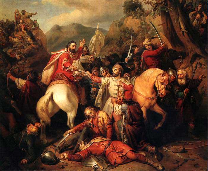 históricos e paisagens em Pest. O quadro "The Self-Sacrifice of
