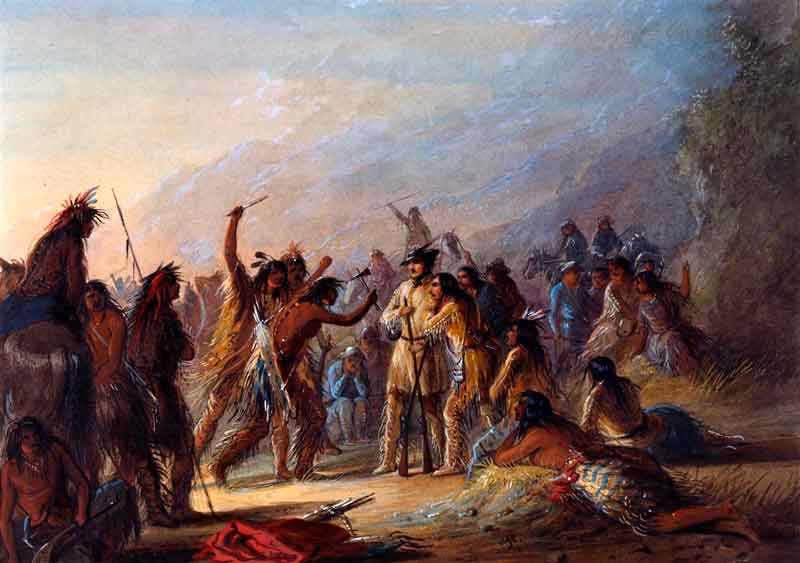 Alfred Jacob Miller nasceu em Baltimore, Maryland, Estados Unidos, em 2 de junho de 1810, cidade onde morreu em 26 de junho de 1874, e onde frequentou as escolas locais na esperança de tornar-se um pintor. Thomas Sully foi o seu primeiro professor. Em 1833, depois de pintar alguns quadros em Baltimore e em Washington, D.C., sua família patrocinou uma viagem à Europa com a finalidade de aperfeiçoar seus dons. Miller despendeu muito tempo em Paris, mas também esteve em Bolonha, Veneza e na Suiça. Durante essa temporada ele teve contato com Bertel Thorwaldsen, Horatio Greenough e Horace Vernet. Seu trabalho consistia, principalmente, em cópias dos grandes mestres antigos. Retornando a Baltimore em 1834, Miller abriu um pequeno estúdio, que não prosperou. Procurando outras oportunidades, ele deslocou-se para "New Orleans" em 1837, onde conheceu William Drummond Stewart, que o contratou para documentar sua viagem de caça nas "Rocky Mountains". No mesmo ano, junto com a "American Fur Company", eles se atreveram até "Fort William" e "Green River". Retornando a "New Orleans" no fim daquele ano, Miller começou a trabalhar nos seus esboços. As cenas e incidentes da temporada de caça foram a base para uma série de pinturas retratando a vida dos índios americanos, e em julho de 1838 Miller tinha condições de montar uma exposição. Em outubro de 1840 ele foi para o Castelo de Stewart ("Murthly Castle"), na Escócia, que abrigou uma coleção de suas pinturas. Depois de passar um ano na Escócia e outro em Londres, Miller voltou a Baltimore em abril de 1842, onde se radicou como um prestigiado pintor de retratos.