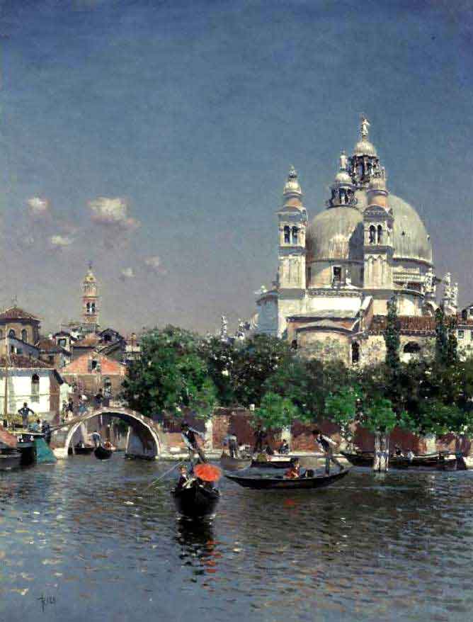 Martin Rico y Ortega, nasceu em El Escorial, Madri, Espanha, em 1833 e morreu em Veneza em 13 de abril de 1908. Sua educação formal foi completada no "San Fernando School", em Madri. Logo depois de graduar-se, começou a pintar ao ar livre e viajou através de toda a Espanha. Ganhando uma bolsa do Governo para estudar em Paris, ele recebeu a influência de Daubigny e da "Barbizon School". Em 1870, com a deflagração da guerra Franco-Prussiana, Ortega retornou à Espanha. Em 1872, acompanhado por Mariano Fortuny, viajou pela Itália, onde, acima de tudo ficou impressionado com o esplendor de Veneza, suas paisagens e sua luz, que ele capturou em inúmeros quadros. De 1879 em diante, quando ele fez de Paris sua residência fixa, Ortega despendeu seus verões em Veneza, alugando um palazzo onde trabalhava; muitas vezes o fazia sentado numa gôndola, esboçando edifícios e pontes com a perspectiva que tinha com o olhar partindo dos canais. Ortega é
