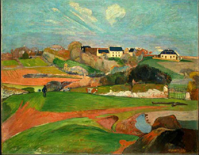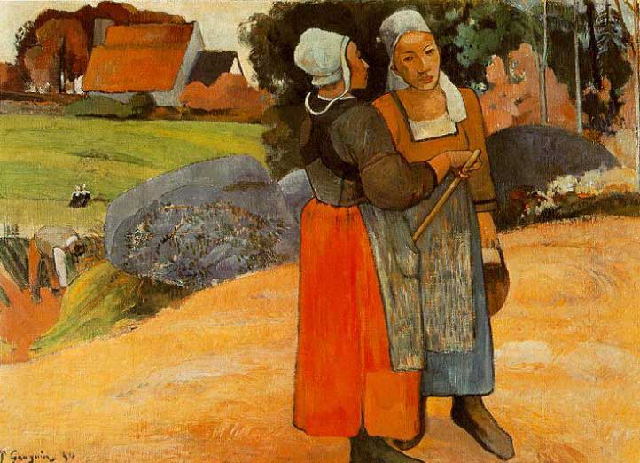 Gauguin afirma que a pintura deve exprimir uma idéia. Em Pont-Aven pinta