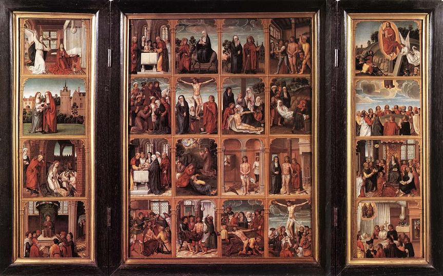 ordem cronológica com cenas da infância e outras depois da morte de Cristo.