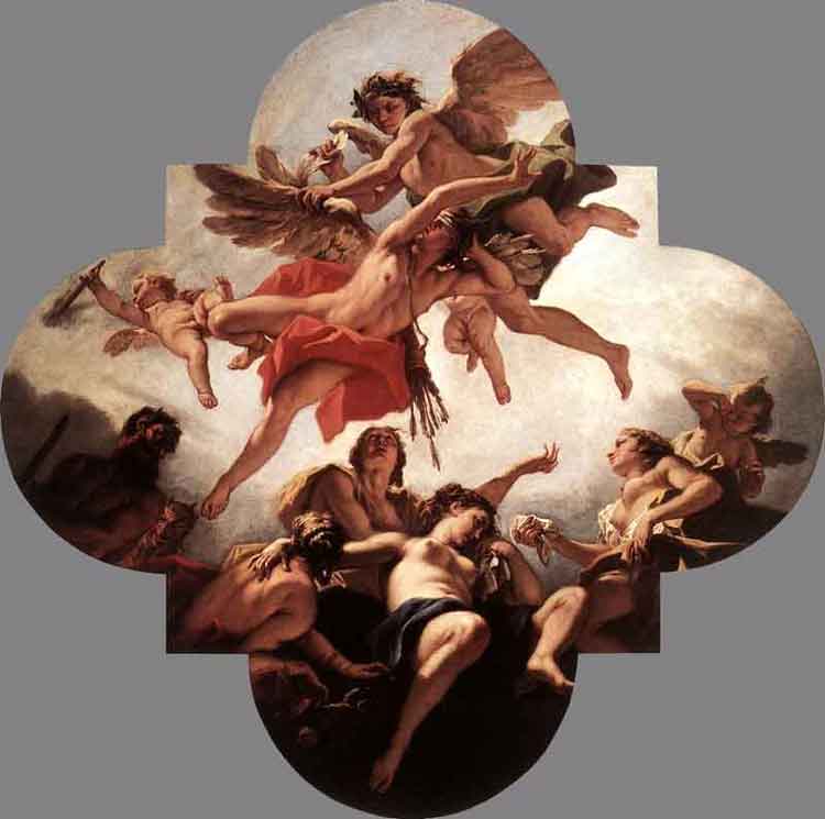 Sebastiano Ricci (3) Seu estilo se construiu sob a influência maior de Veronese, Pietro da Cortona e Alessandro Magnasco, adotando com uma paleta rica e clara, uma técnica mais livre e vibrante, abrindo o caminho para Tiepolo, e foi um elemento-chave no desenvolvimento do estilo Rococó em Veneza. Foi, por sua vez, uma influência para o trabalho de Francisco Polazzo, Gaspare Diziani, Francesco Migliori, Gaetano Zompini e Francesco Fontebasso.