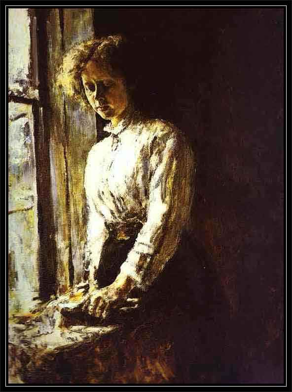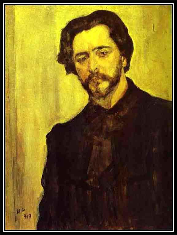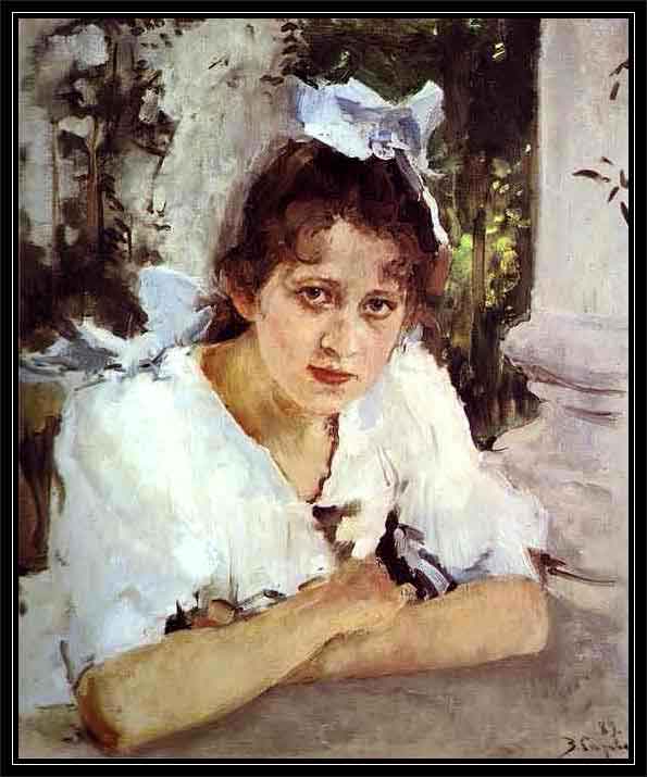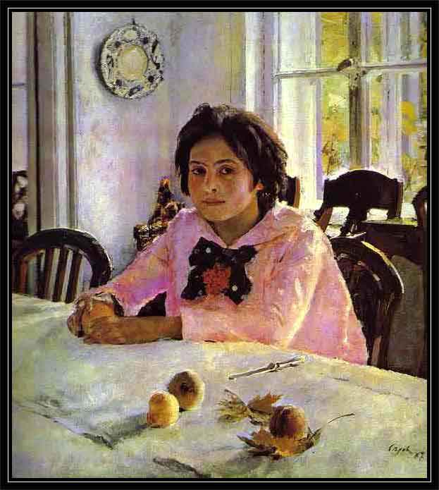 Um dos maiores retratistas russos, Valentin Alexandrovich Serov, nasceu em São Petersburgo, em 19 de janeiro de 1865, filho do famoso compositor Alexander Serov. A formação da perspectiva artística de Serov foi grandemente afetada pelo período em que morou em Abramtsevo e Domotkanovo, não muito longe de Moscou, a convite de Savva Mamontov. Ele começou a apreciar a paisagem rural da Rússia central, com seus espaços abertos circundados por bosques, ravinas, capoeiras e aldeias. A propriedade rural do famoso patrono das artes Mamontov, em Abramtsevo, onde Korovin e Vrubel trabalhavam em decoração, inspirou a criação artística do jovem Serov que, aos vinte e dois ou vinte e três anos, produziu obras que se tornaram clássicas na Arte Russa. Em Abramtsevo ele pintou o famoso retrato de Vera Mamontova, aos doze anos de idade (Girl with Peaches, 1887), no qual ele queria, nas suas próprias palavras, "alcançar a perfeição sem sacrificar a frescura da pintura - como conseguiam os mestres antigos." Em Domotkanovo Serov também pintou sua prima "Maria Simonovich: A Girl in the Sun" (1888). Esses dois retratos foram executados não somente com o fascínio por uma nova técnica pictórica, mas também com grande inspiração e lirismo, o que imediatamente destacou o jovem artista e o tornou famoso. Serov recebeu um prêmio da "Moscow Society of Art Lovers" e o segundo retrato foi, logo em seguida, comprado por Pavel Trelyakov. Outros trabalhos concluídos em Domotkanovo foram "October", (1895), "Yearlings at a Watering-Place", (1904), "A Woman with a Horse", (1898), e muitas ilustrações para as fábulas de Krylov. ![]() |