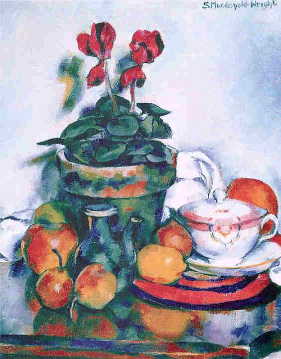 ![]() Still Life with Cyclamen and Fruit Em Paris tornou-se amigo de Morgan Russell e juntos desenvolveram Sincronismo, uma filosofia estética que utiliza teorias "modernistas" de percepção. Eles aplicaram ritmos musicais, espaço e abstração para criar camadas luminosas de cor, luz e forma, que identificaram o