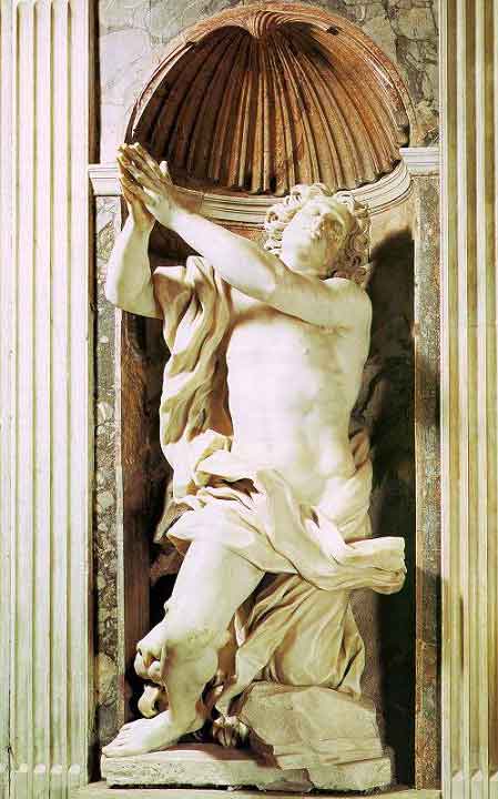 (1598-1680) Eminente artista barroco, Bernini trabalhou principalmente em Roma. Distinguiu-se como escultor e arquiteto, ainda que tivesse sido também pintor, desenhista, cenógrafo, criador de espectáculos de pirotecnia, entre outras atividades. Também esculpiu grande parte das obras de arte que embelezam Roma e o Vaticano Mais detalhes de sua biografia encontram-se em Bernini I. ![]() |
